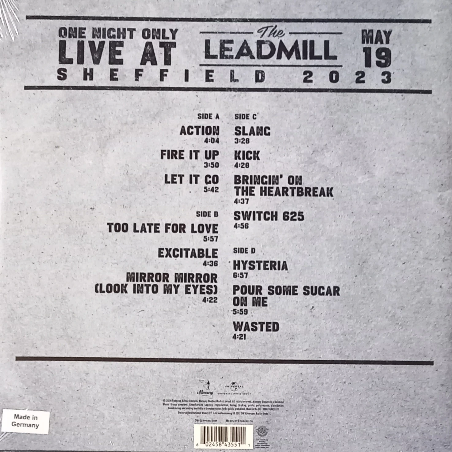 Delivering one of Def Leppard’s most intimate hometown performances, this Def Leppard – One Night Only Live At The Leadmill (50th Anniversary / Record Store Day 2024) special coloured vinyl edition captures the Sheffield show from May 19, 2023, in stunning live audio. Pressed as a limited edition 2LP coloured vinyl to celebrate Record Store Day, this release reflects over 45 years since the band’s formation in 1977, blending classic hits with raw live energy. Recorded at the historic club venue in the band’s hometown and released alongside their world tour buzz, this edition is a must-have for rock collectors and fans of Def Leppard’s rich catalogue.