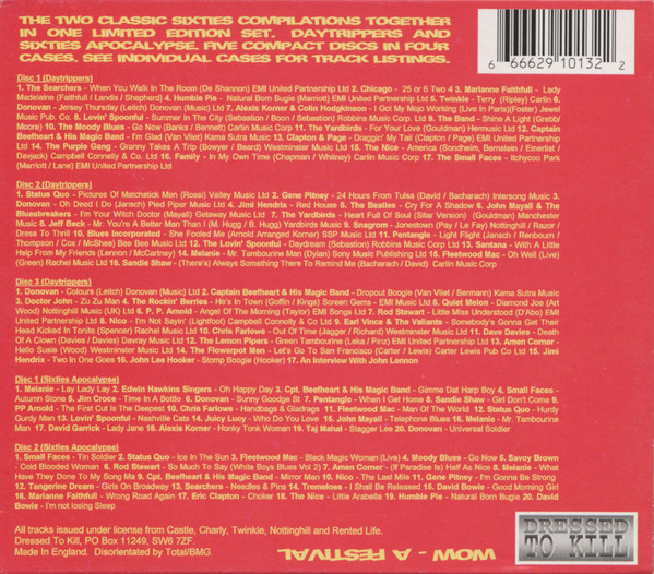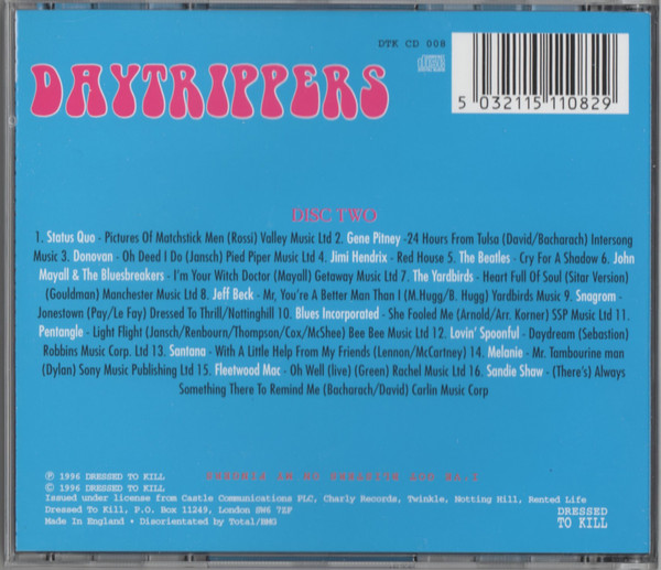 Disraeli Years: Daytrippers And Sixties Apocalypse is a 5‑CD compilation box set released by Dressed To Kill (DTKBOX 69). The collection features 1960s rock, pop, beat, blues, and psychedelic music, highlighting classic tracks alongside rare and live recordings.