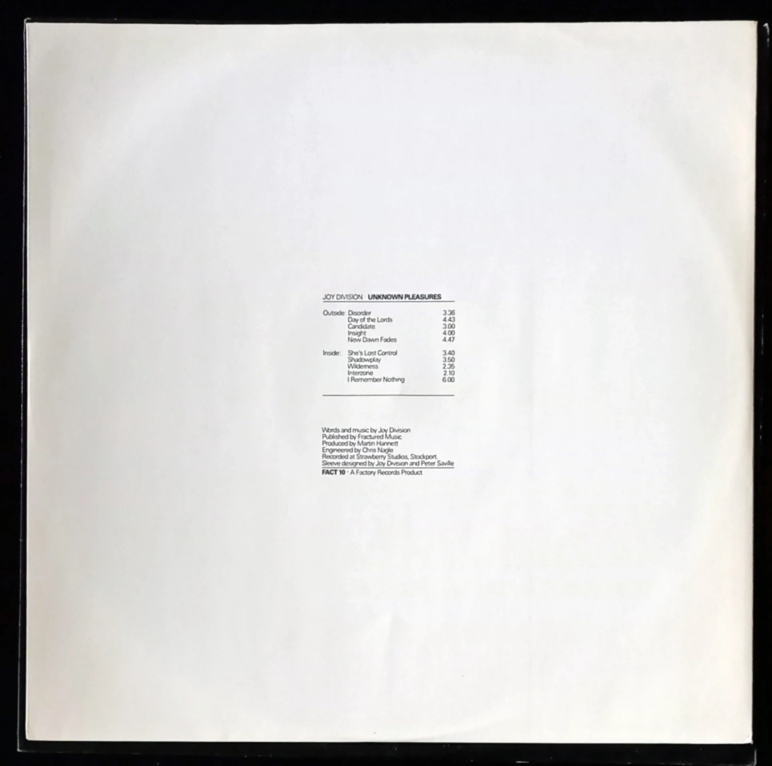 This is an original Factory Records pressing, complete with the iconic textured black sleeve, designed by Peter Saville. The tactile cover and minimalist design have become as legendary as the music itself, making early pressings essential pieces for collectors.